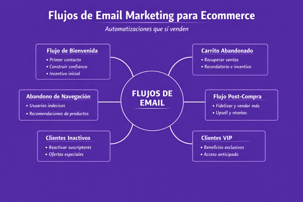 El email marketing para ecommerce no se trata de enviar correos, sino de construir sistemas automatizados que trabajen por tu negocio todos los días. Los flujos bien diseñados permiten recuperar ventas, aumentar la recompra y crear relaciones duraderas con los clientes.